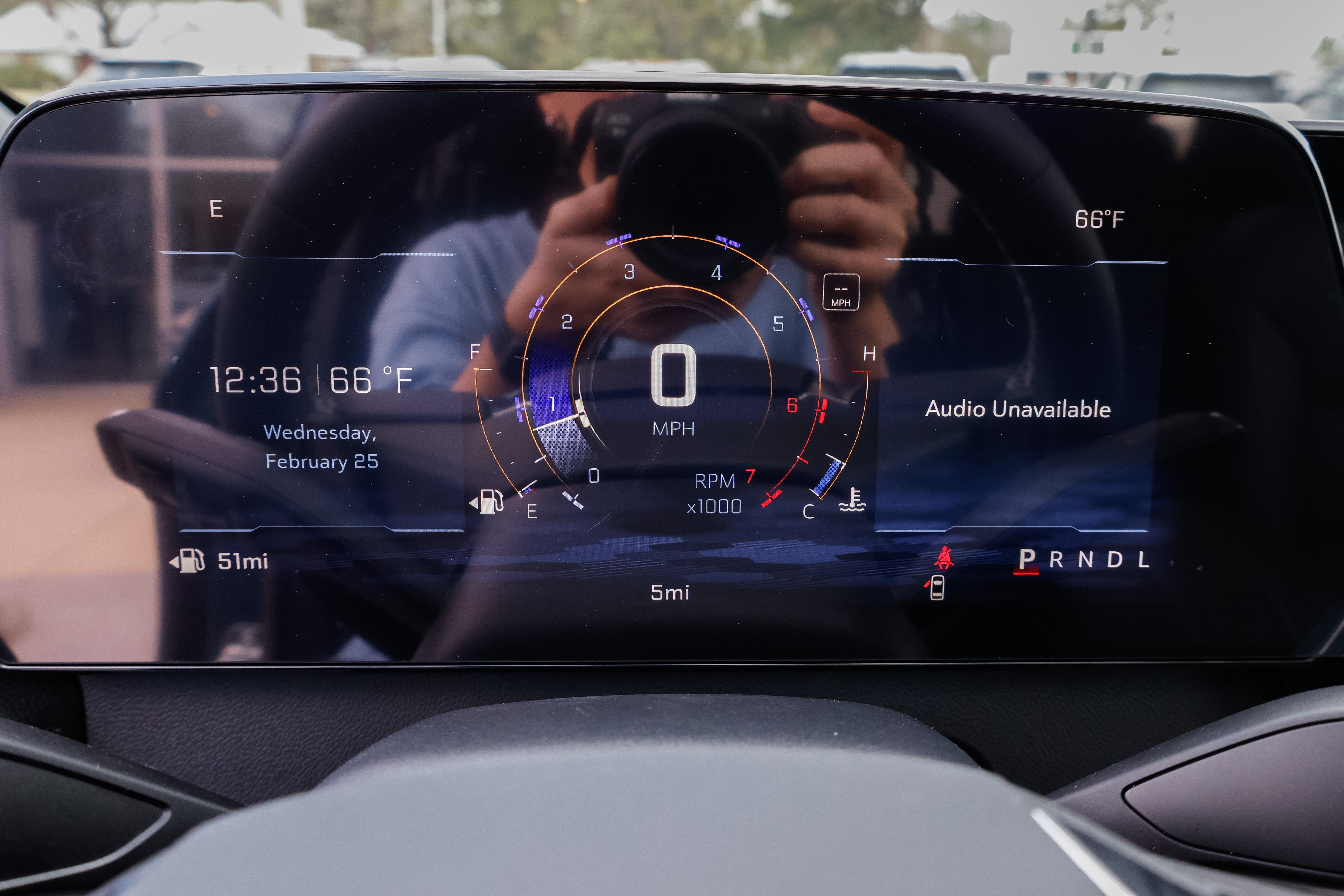 - The vehicle is equipped with a camera that displays an image of the area behind the vehicle on an interior display. The camera is equipped with its own washer.